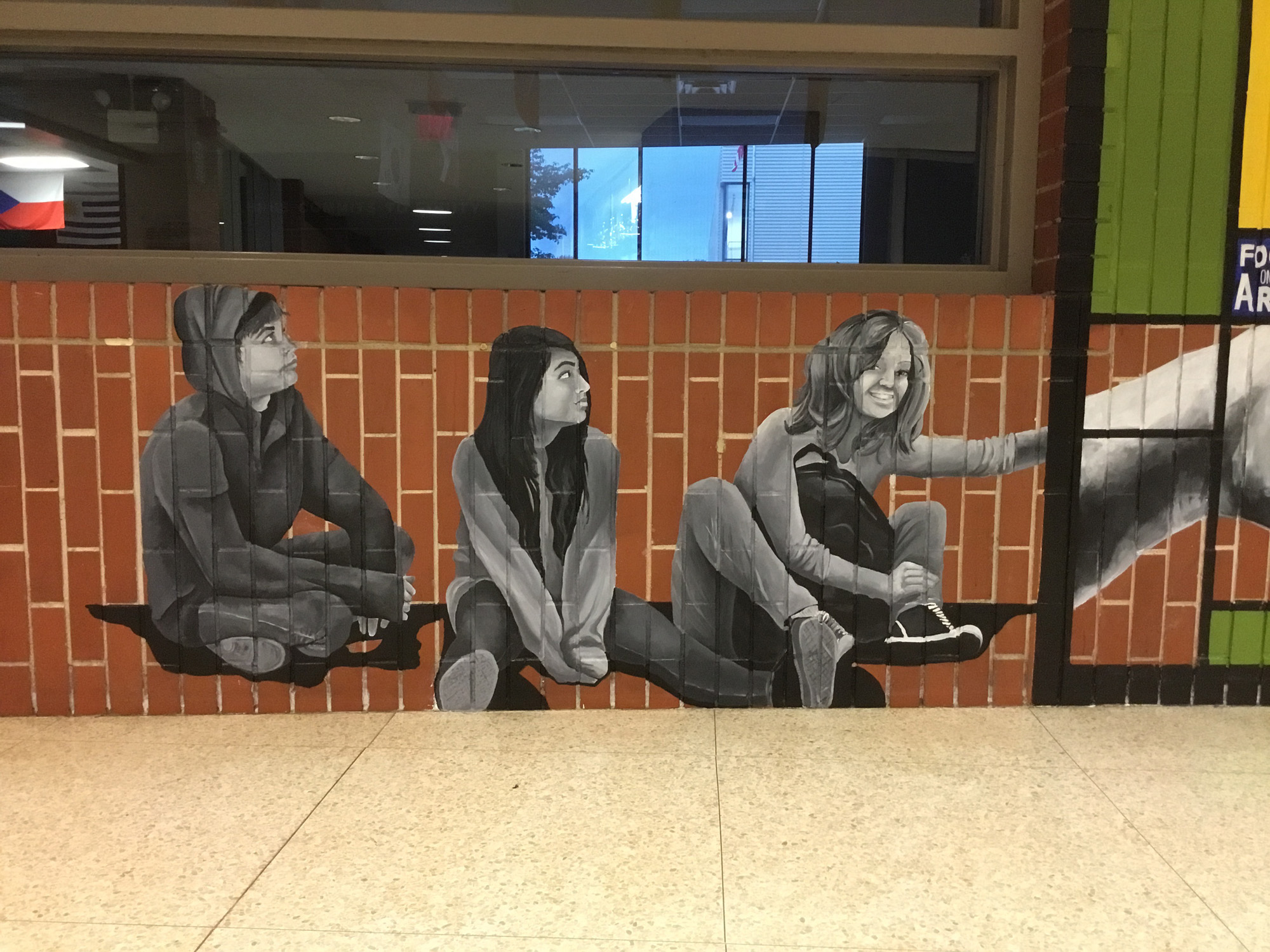 Nancy and partner artist Eric Orner volunteered to be Artists in Residence at their alma mata Highland Park High School. Nancy and Eric created this large-scale permanent indoor mural during Highland Park High School’s biannual festival, FOCUS on the Arts with help from HPHS students and Pochis Bank Studio Artists.